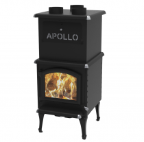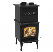 The APPOLO wood heater is a high-performance heating solution for Australian homes, delivering a powerful 32kW output to warm spaces between 92m² and 278m². Built with a durable square cast iron door, metallic black finish, and stylish chromed trims, it combines elegance with strength. Equipped with a 460TH blower, convection and radiation heating, and a self-cleaning glass system, it ensures consistent warmth and clear views of the flames. The APPOLO wood heater features low clearances to combustible materials, a ceramic wool baffle, and a stainless steel secondary air system for improved combustion efficiency. The refractory brick-lined firebox enhances heat retention, while its low emissions (1.56g/h) and high efficiency (77.75% LHV) make it eco-friendly. Designed for logs up to 558mm and tested by Intertek, it also offers optional accessories like additional fans, thermodisc kits, and an outdoor air intake package.