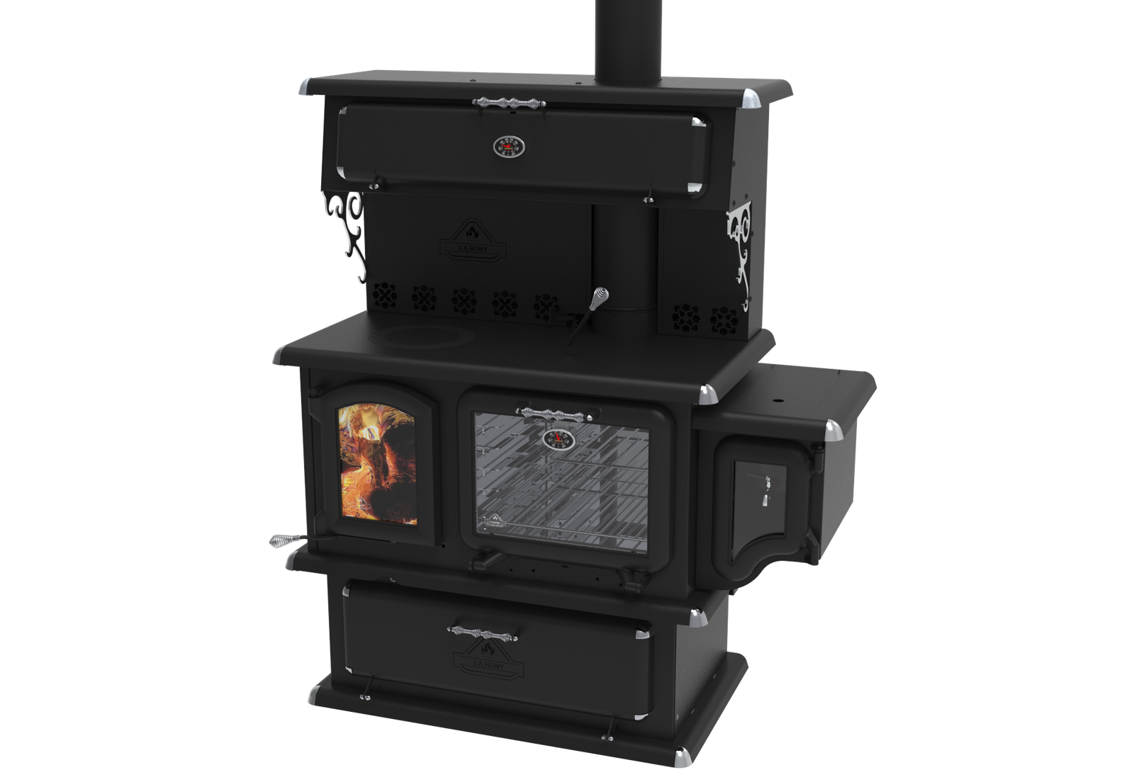 The Chief Wood Cookstove is the perfect blend of heating power and cooking convenience for Australian homes. This freestanding stove efficiently warms spaces from 92m² to 167m² with its impressive 20kW output. Eco-friendly and practical, it features a stainless steel water tank with faucet, upper food warmer, and three removable cooking lids, including a double lid. Its arched cast iron door, complemented by chromed accents, adds timeless elegance. Designed to burn logs up to 457mm, the Chief Wood Cookstove boasts a 64.47% efficiency and low emissions. Complete with a limited lifetime warranty, it’s a stylish, high-performance choice for heating and cooking in Australia.