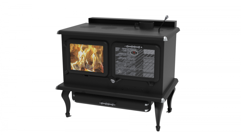 This high-performance wood cookstove utilises both convection and radiation heating, ensuring even warmth throughout your home. Its advanced self-cleaning glass air-wash system keeps the viewing windows clear, reducing maintenance and enhancing your cooking experience. With low emissions and high efficiency, it offers an environmentally responsible solution for heating and cooking.