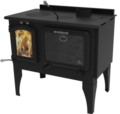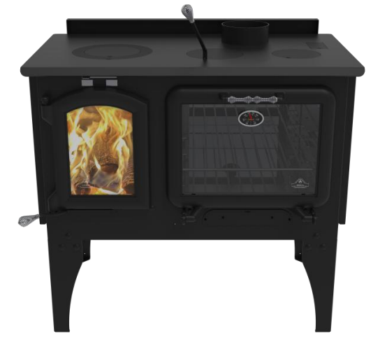 The stove’s flat cooking surface with three removable lids allows for fast and efficient cooking directly on the unit, adding functionality beyond heating. An integrated oven thermometer ensures better temperature monitoring during use, while the glass air-wash system helps keep the viewing window clean for an uninterrupted view of the fire.